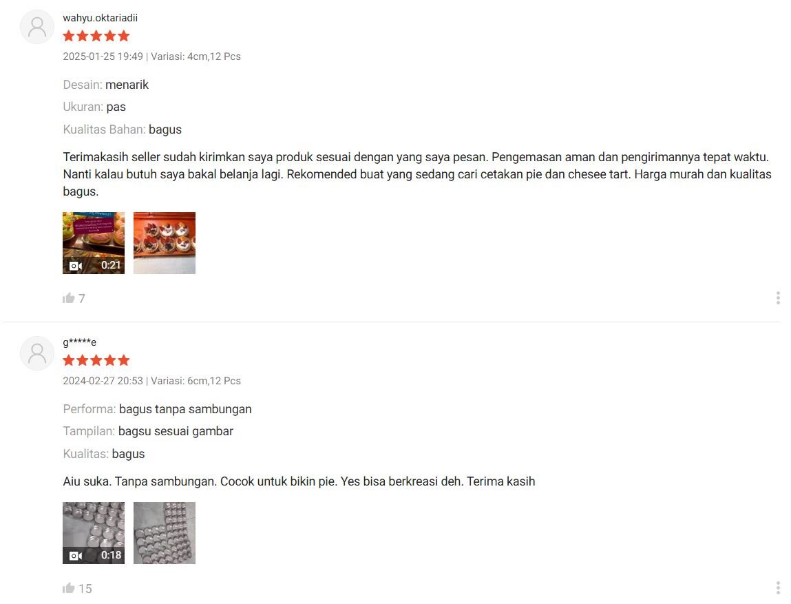 Berbahan Alumunium lebih sehat, awet dan tahan lama, sangat memudahkan dalam pembuatan kue pie, bolu mini, bolu kuskus dan tart mini.